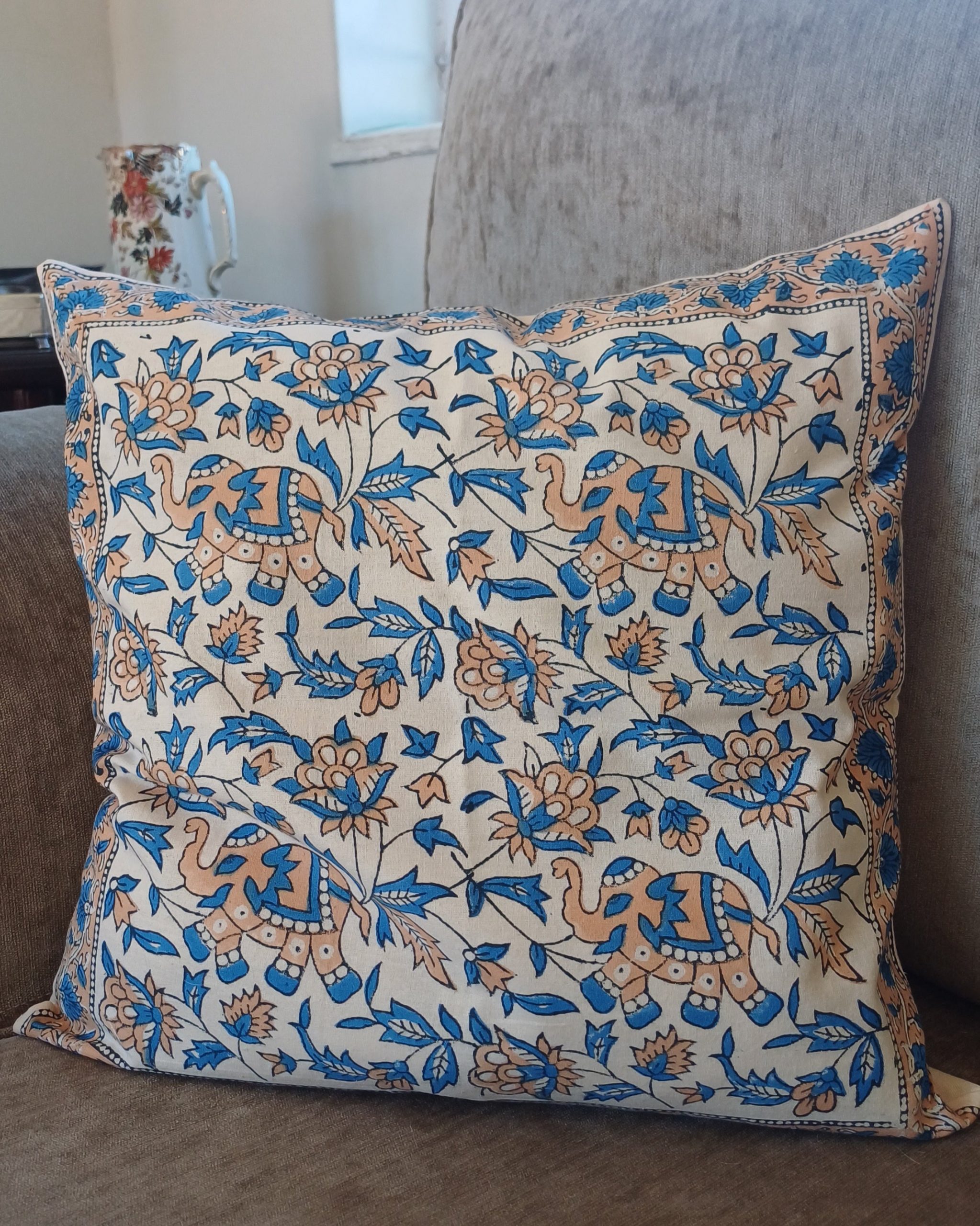 This 40cm x 40cm Indian cotton cushion cover features a stunning block print design, adding a touch of traditional artistry to your decor. Crafted from soft, durable cotton, it offers both comfort and style. The intricate block print showcases vibrant patterns and colours, making it a versatile accessory for enhancing any room. Ideal for living rooms, bedrooms, or as a statement piece, this cushion cover combines cultural charm with practical elegance.