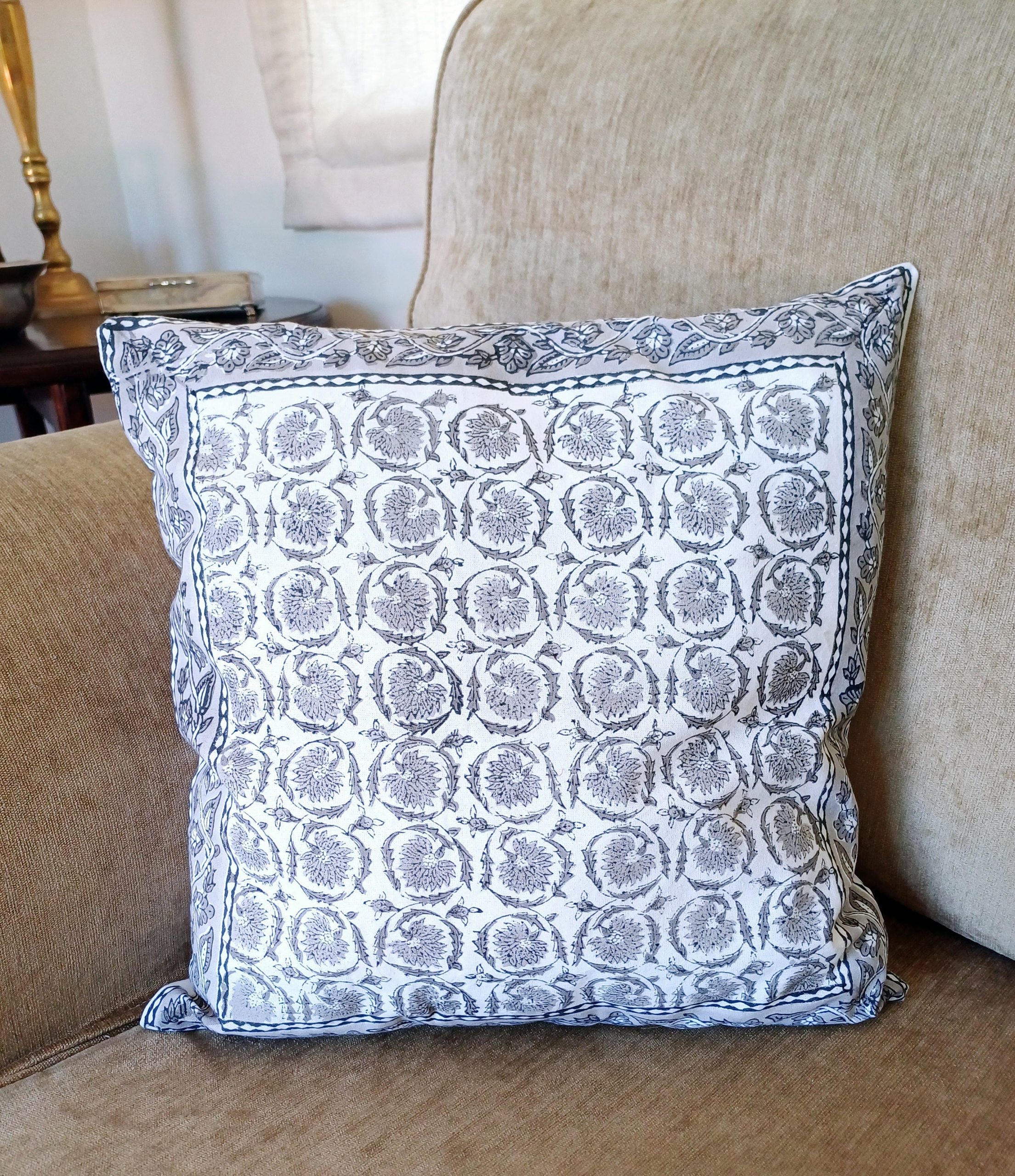 Cushion Cotton Cover Block Print Rapit – Grey Singular
