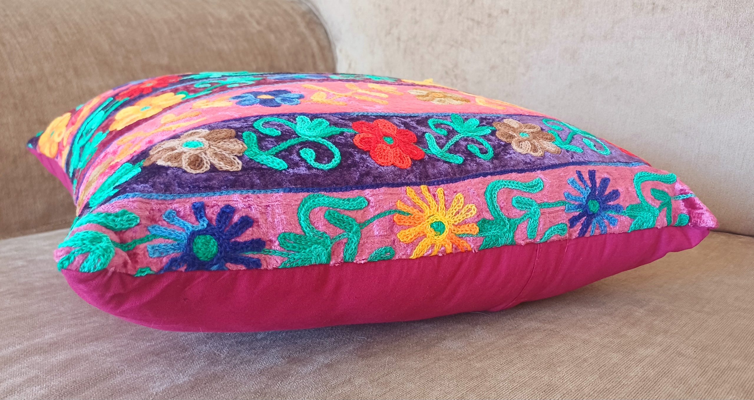 Embroidered Velvet Cushion – Exquisite Indian Craftsmanship