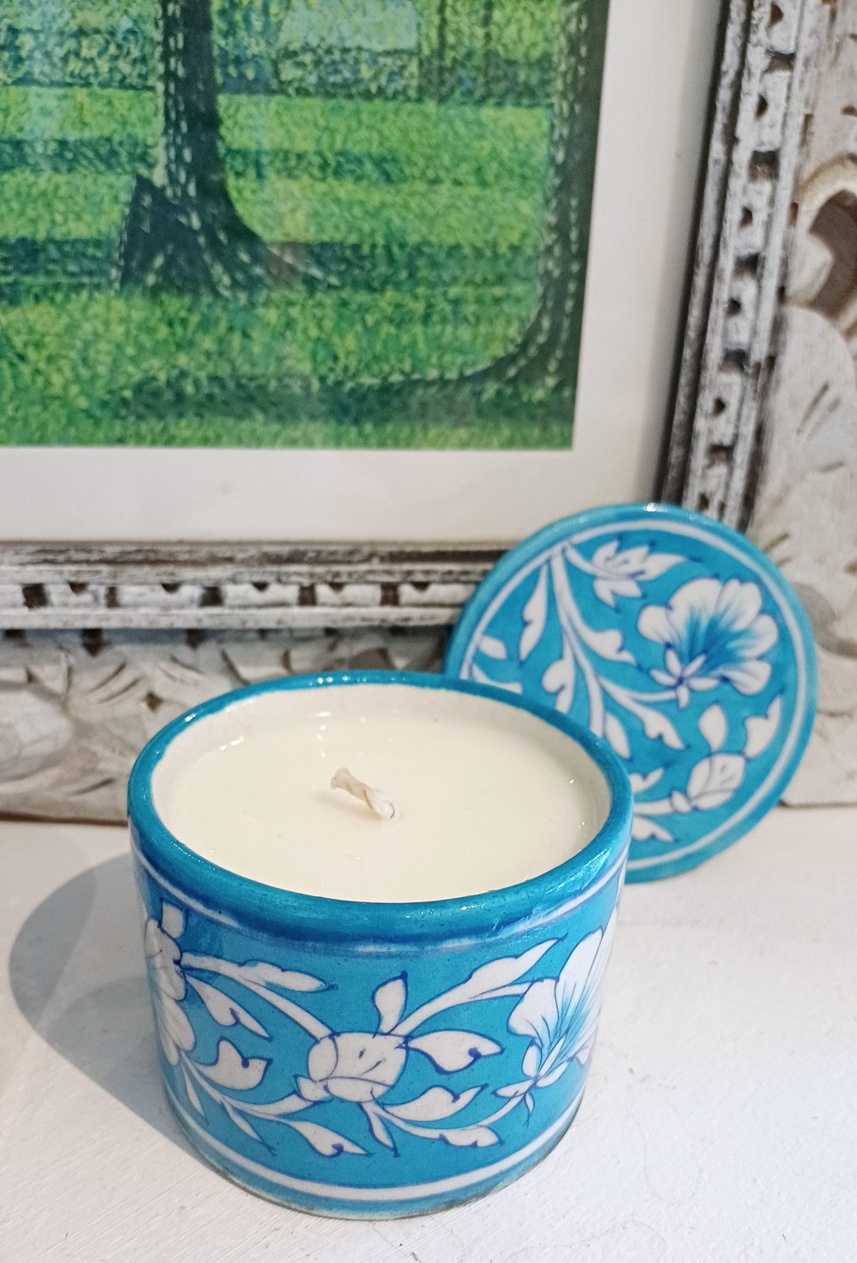 Turquoise Floral Jaipur Pot with Lemongrass, Lime & Ginger Soya Candle
