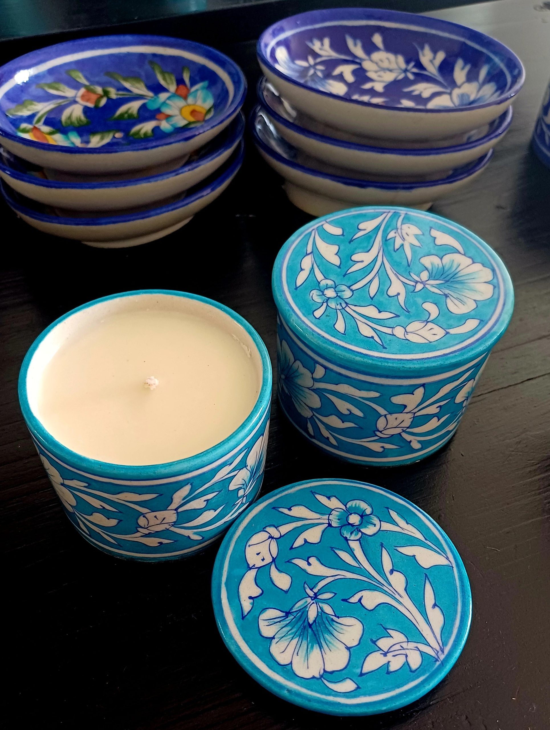 Each artisan pottery candle is hand-finished, making every piece unique with slight variations in glaze and form – a celebration of handcrafted individuality. The soy wax is clean-burning and biodegradable, while the lead-free cotton wick ensures an even, smoke-free glow.