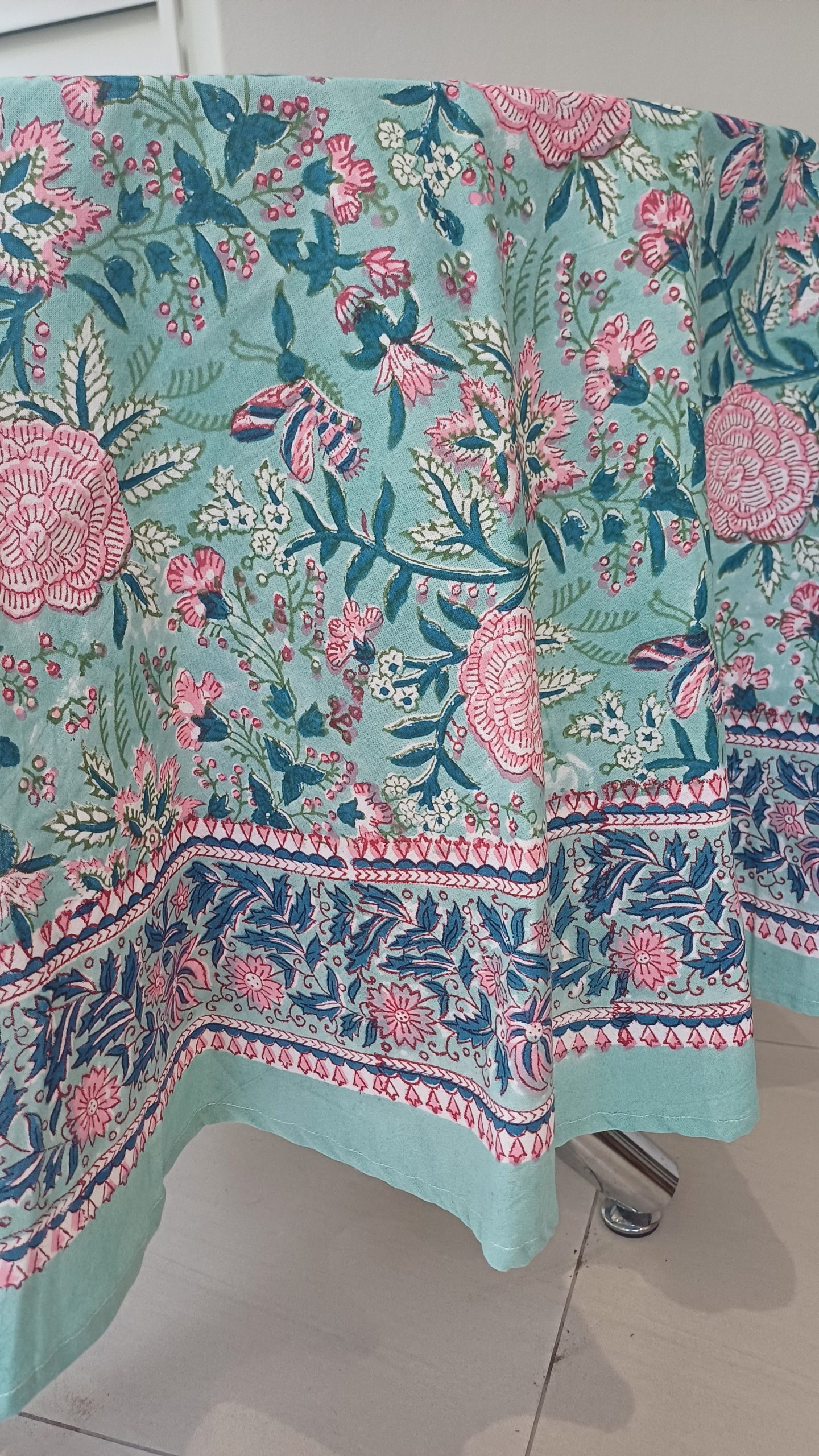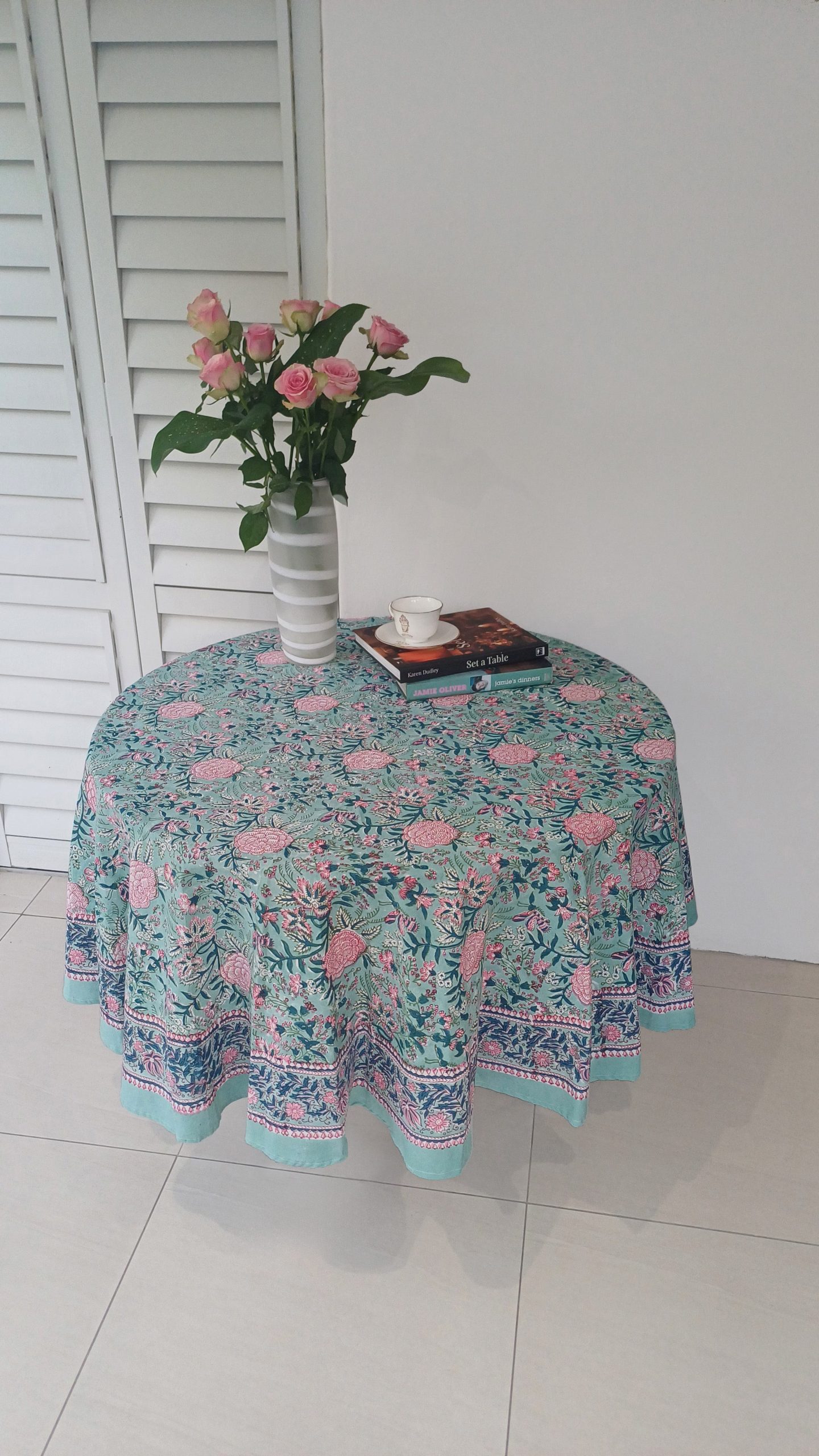 Round cotton tablecloths from Jaipur are renowned for their vibrant colors, intricate designs, and high-quality craftsmanship. Often created using traditional block printing techniques, these tablecloths capture the essence of Rajasthani artistry and add a touch of elegance to dining spaces. Here’s a general description and details about sizes: